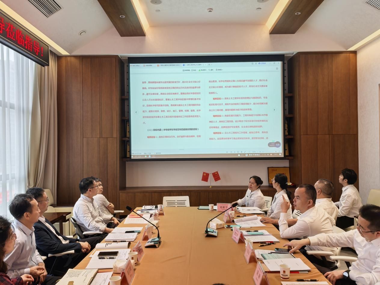 3月28日,为扎实推进土木工程专业工程教育专业认证工作,深化产教融合,提升人才培养质量,广西民族大学乐天堂f88覃祖聪书记、周月娥副院长、学校邓清沛督查员等一行7人赴广西启盛建设集团开展专题调研交流。此次走访旨在对接行业需求,优化课程体系与实践教学环节,为工程教育认证提供有力支撑。