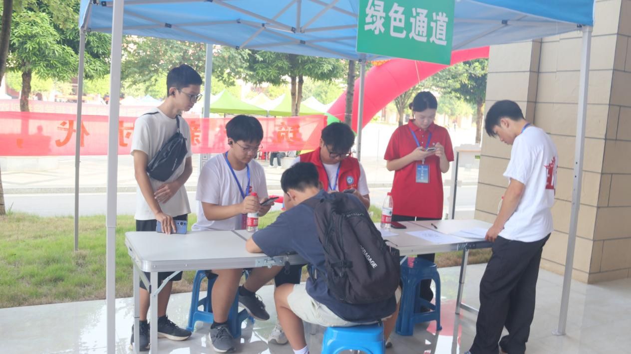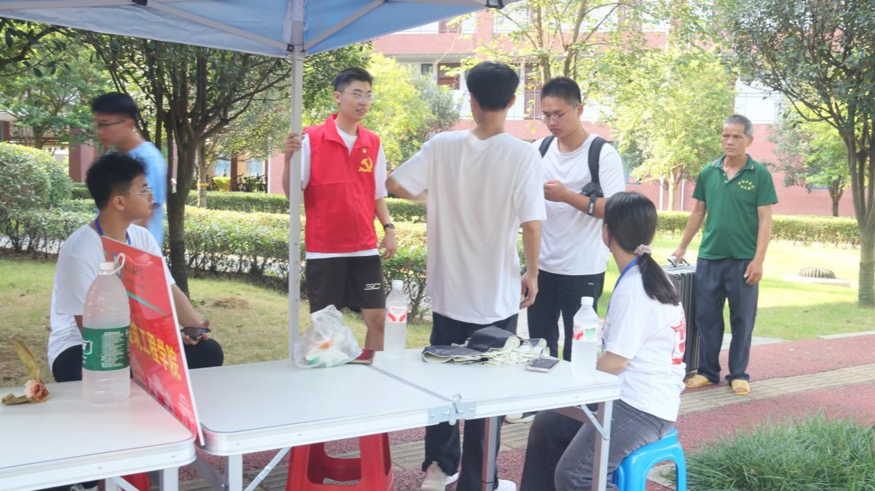 学院楼长廊与正厅内,各班助理有序接收新生中学档案与团籍档案等材料。家长接待处现场发放宣传资料,开展防诈骗安全教育,并就学校与学院发展、专业建设等问题进行答疑。因应天气变化,学院专门设置行李临时存放点,实施贴标管理,确保物品安全。各宿舍楼志愿者提供全程接驳、引导及搬运服务,切实解决新生“最后一百米”的问题。