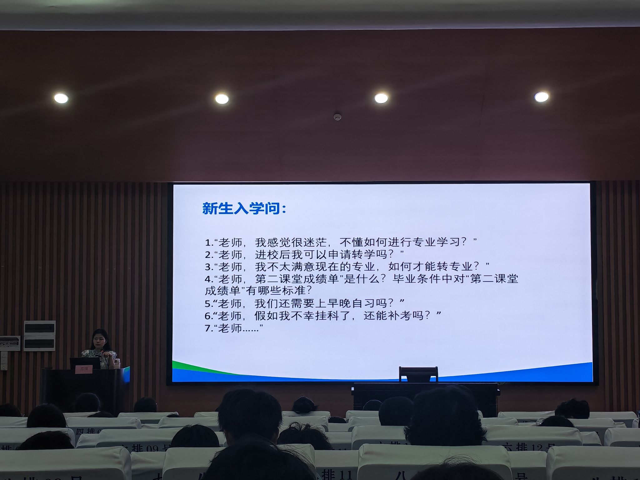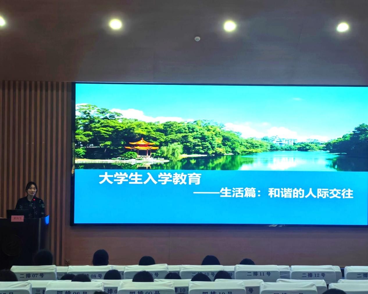 9月18日下午,乐天堂f88新生入学教育活动在武鸣校区椭圆形报告厅举行。本次活动由学院团委副书记黄海雯和辅导员苏瑛、黄怡翔共同主讲,学院全体新生参会。