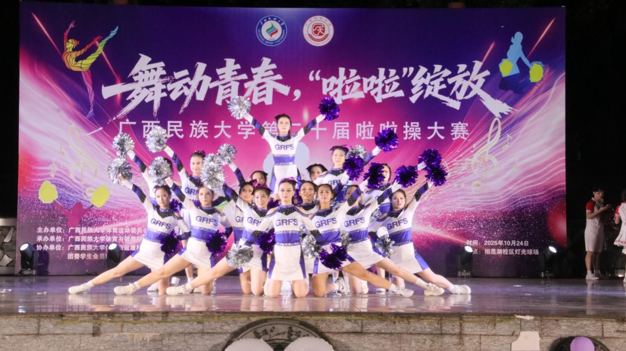2025年10月24日晚,广西民族大学第二十届啦啦操大赛在相思湖校区灯光球场举行。乐天堂f88代表队凭借出色表现,荣获武鸣校区二等奖。