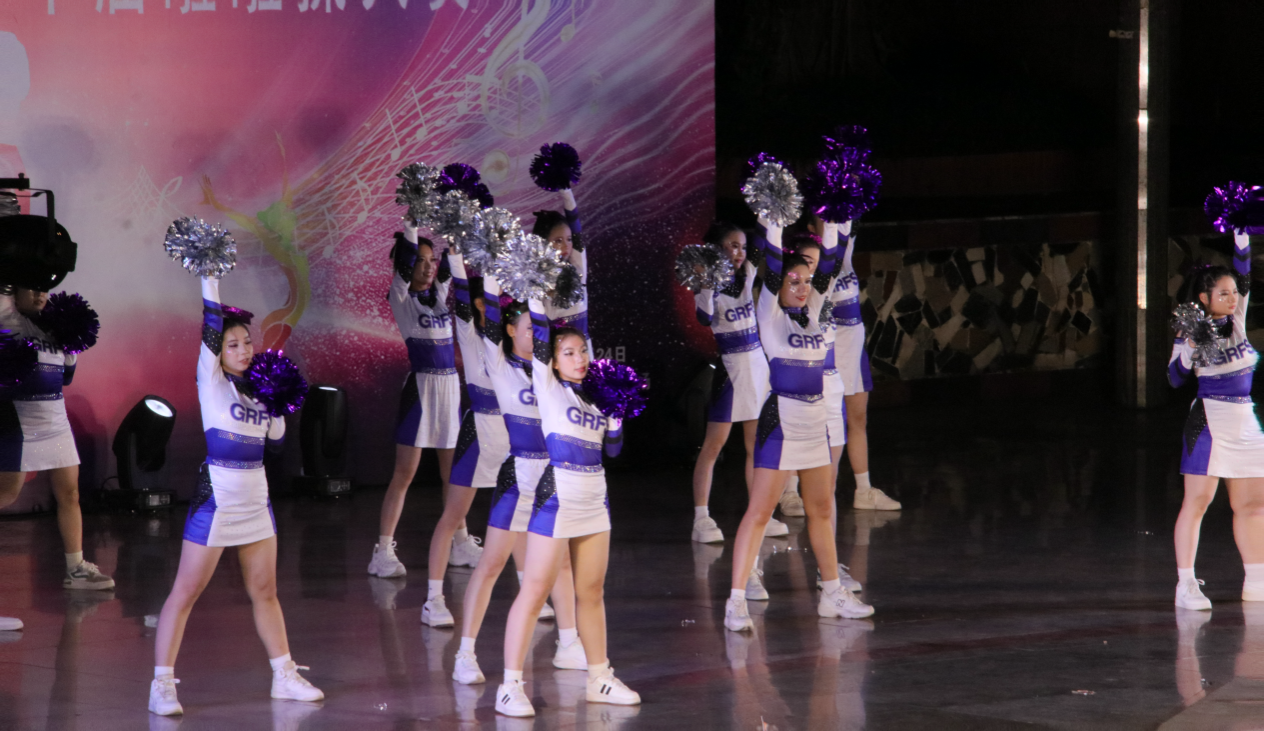 比赛中,乐天堂f88啦啦操队员身着蓝白相间队服,手持银紫色花球,以整齐有力的动作、饱满的精神状态闪亮登场。她们舞步矫健、节奏明快,每一处动作细节都展现了力与美的结合,充分彰显出青年学子昂扬向上的精神风貌,为现场观众呈现了一场精彩的视觉盛宴。