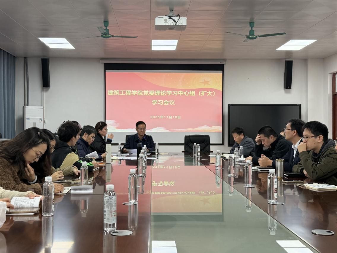 2025年11月18日下午,我院党委理论学习中心组(扩大)专题学习会在武鸣校区实验楼A508会议室召开。学院党委书记覃祖聪主持会议并领学,学院全体教职工参加。