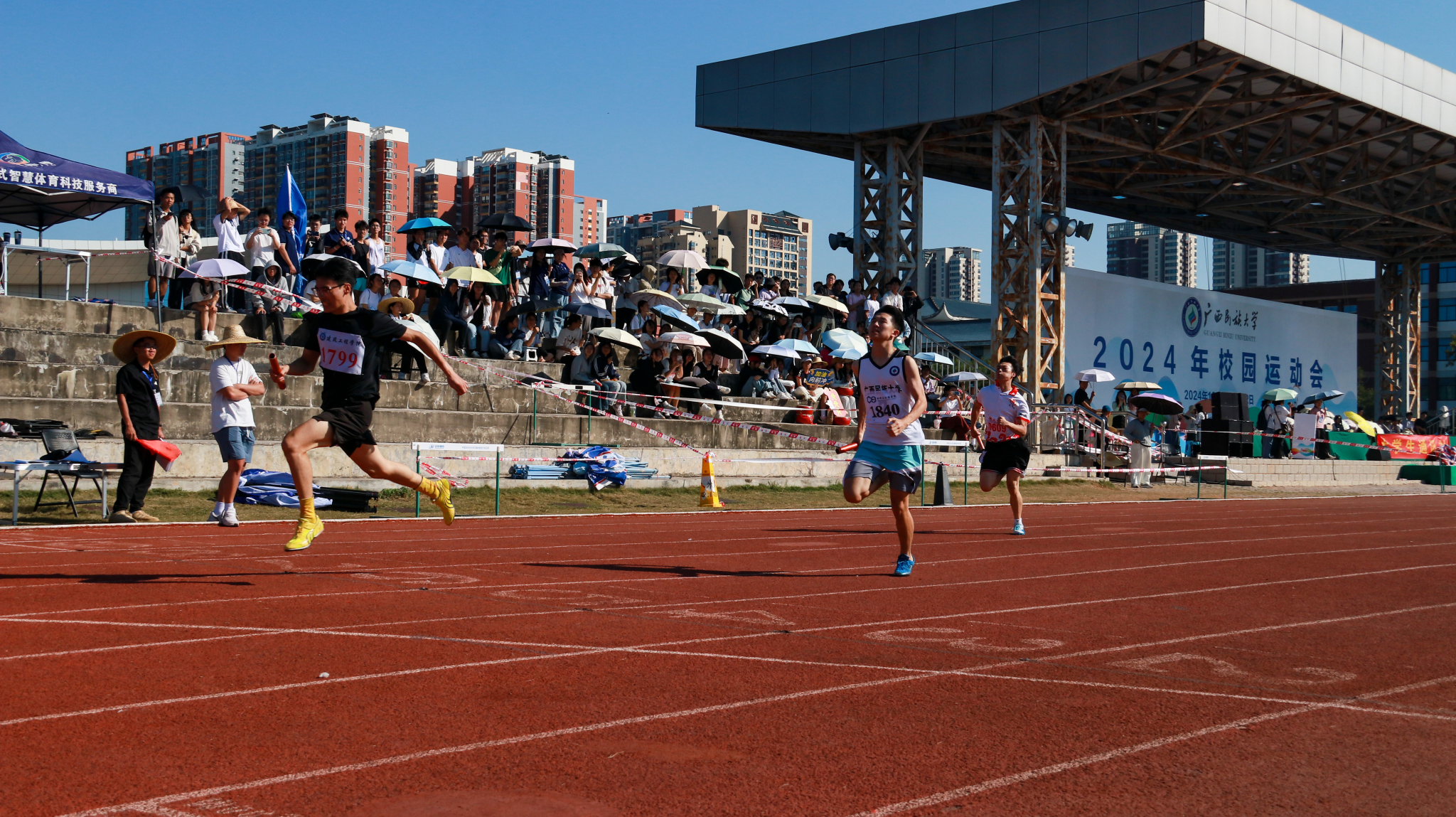 在本次运动会中,我院学生积极报名参赛,在场上不断拼搏,积极为学院争取荣誉。在个人赛,男子200米预赛,我院杨东、韦日宝同学双双挺进决赛,女子100米栏决赛,蔡婉婷同学荣获第四名;在集体赛;男子三足接力团体我院获得第四名。在赛场下,工作人员认真为上场的运动员做好后勤保障工作。与此同时,展区的讲解员也通过专业作品向西区和东区的同学介绍专业特色,为感兴趣的老师以及校外人员讲解建筑模型。